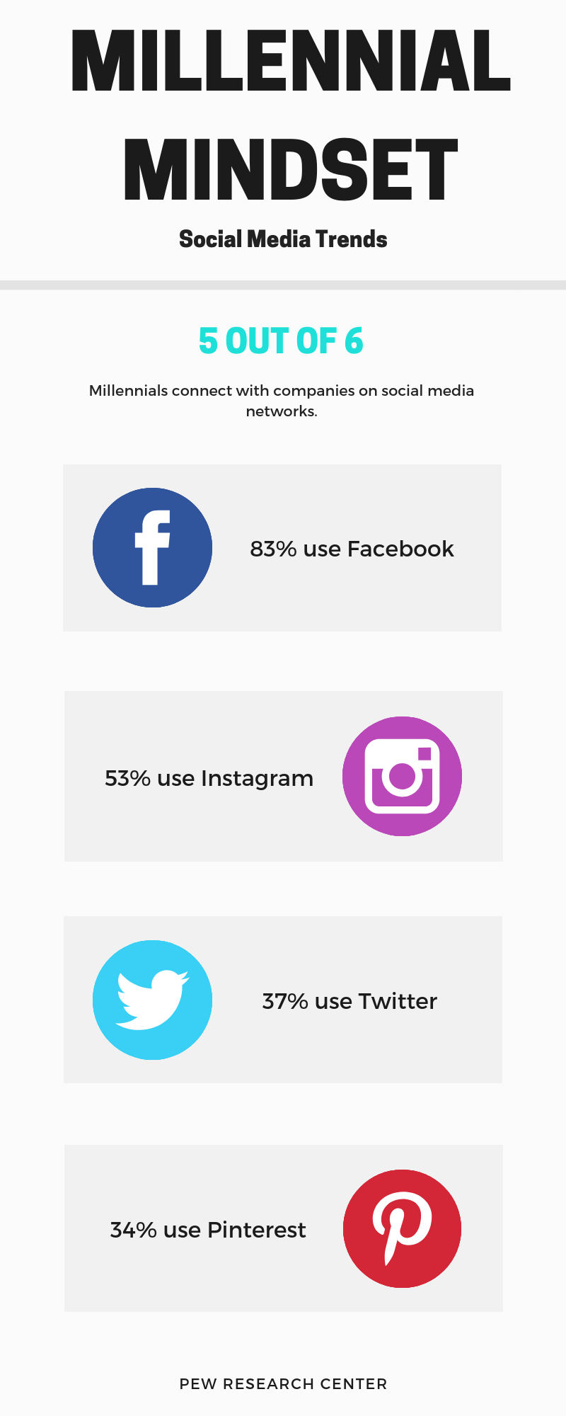 Speaking of visual content, social media and technology, in general, are big influences when it comes to Millennials. After all, 65 percent are likely to start interactions with a brand or organization online. A similar statistic found that 50 percent of Millennials will use the internet to research products before deciding to make a purchase. Nearly everything we do can involve using the internet to quickly gain the information we need. Look at the infographic below for more statistics when it comes to our social media habits.